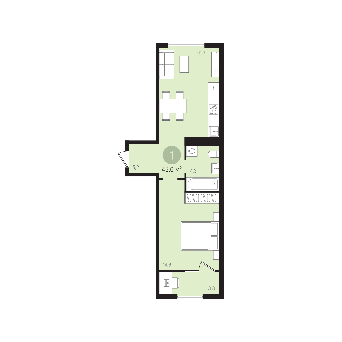 На демонстрационной квартире представлена планировка с кухней-гостиной.