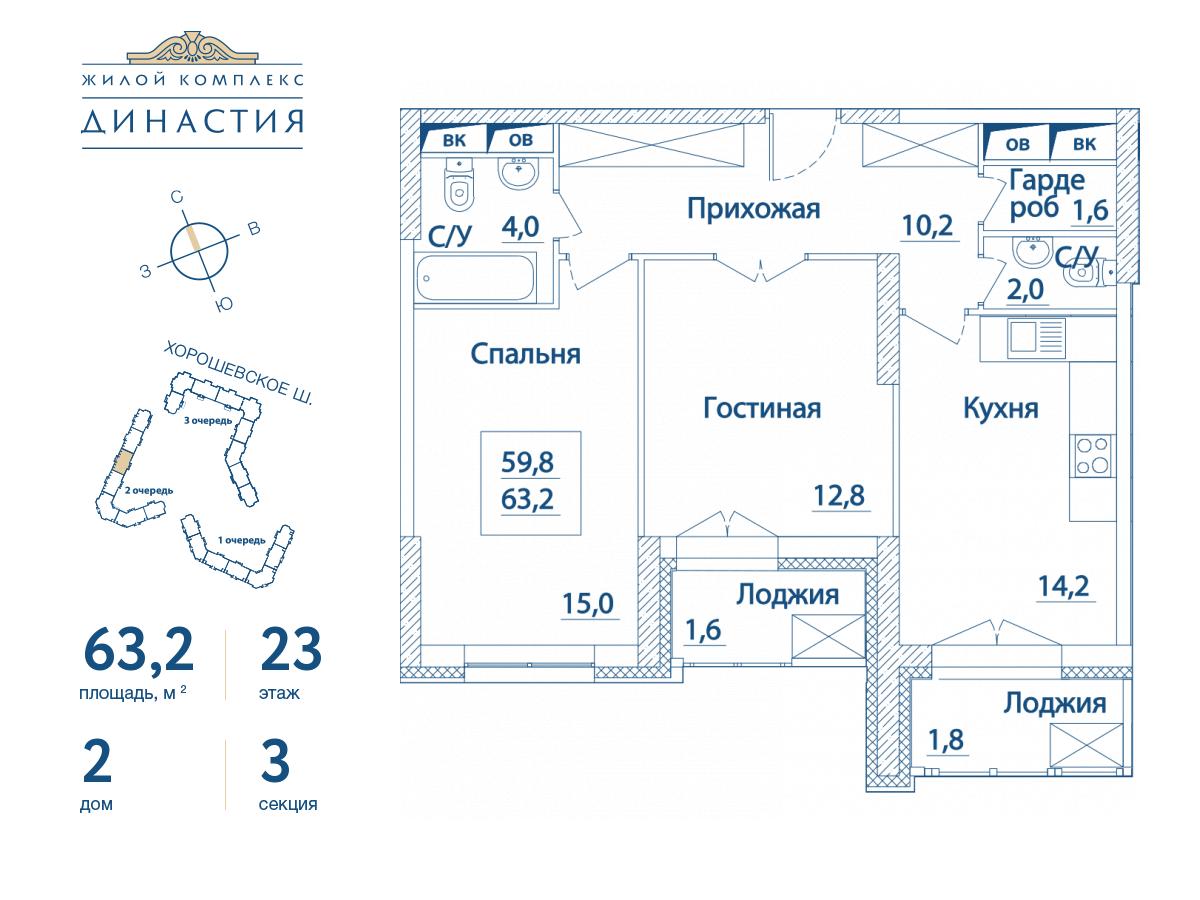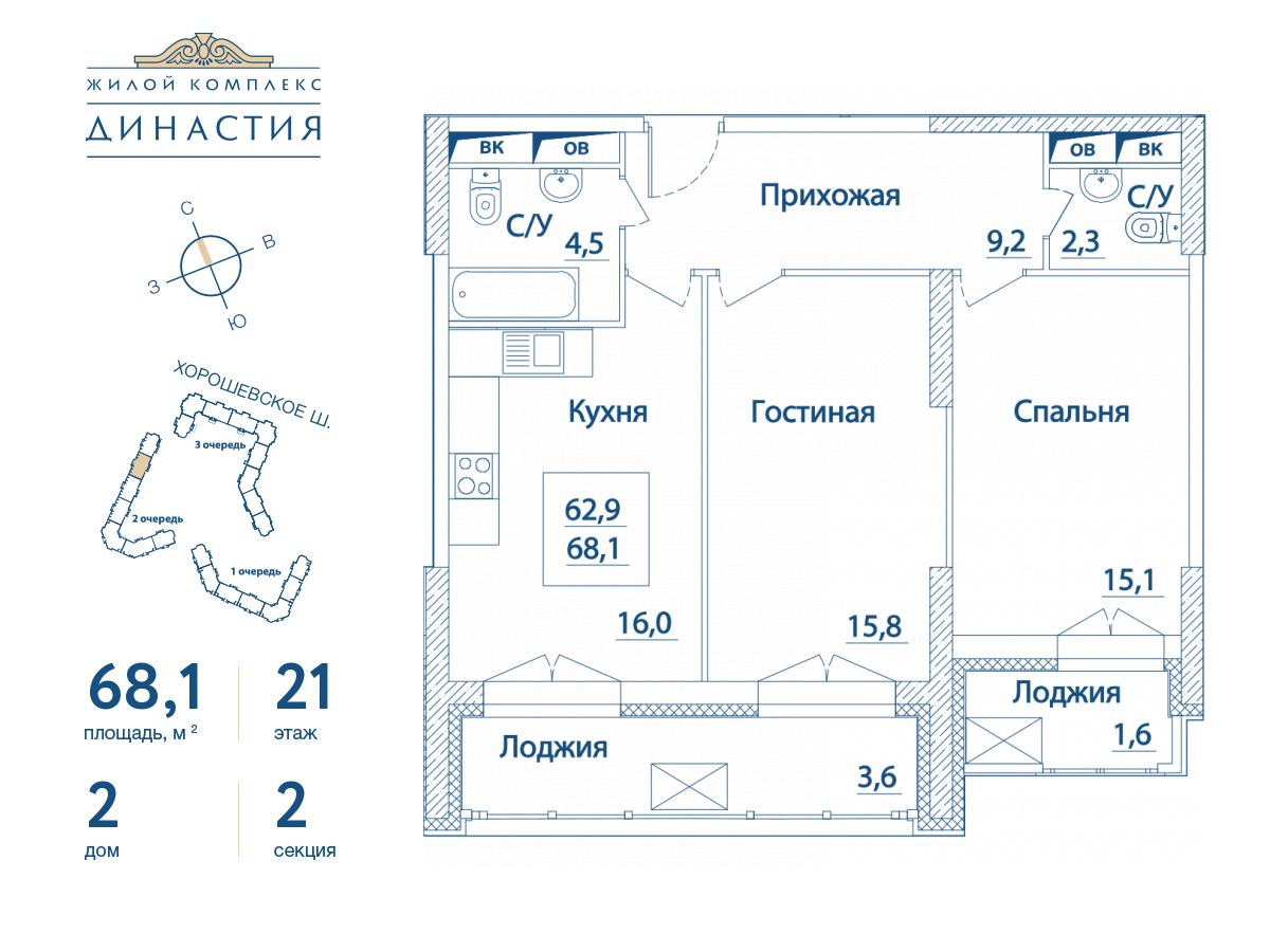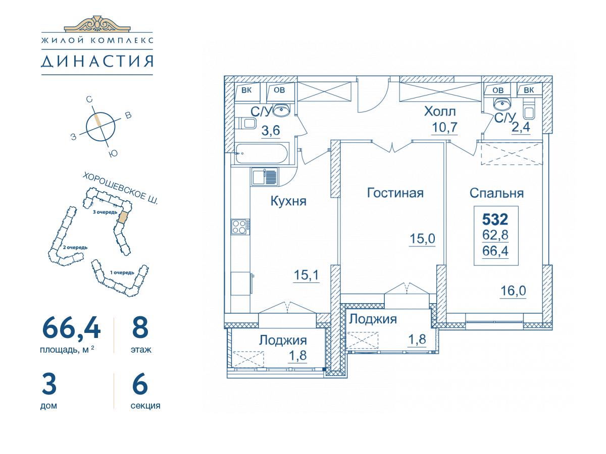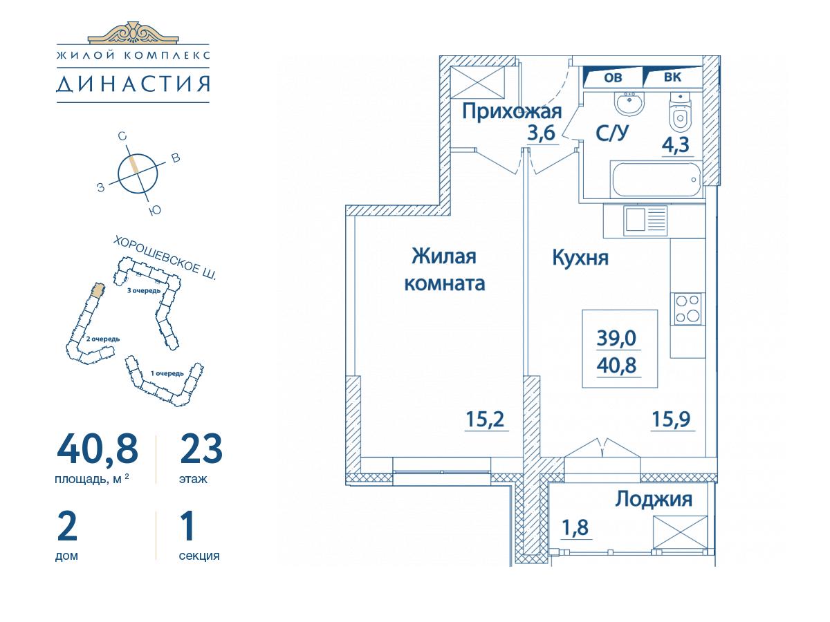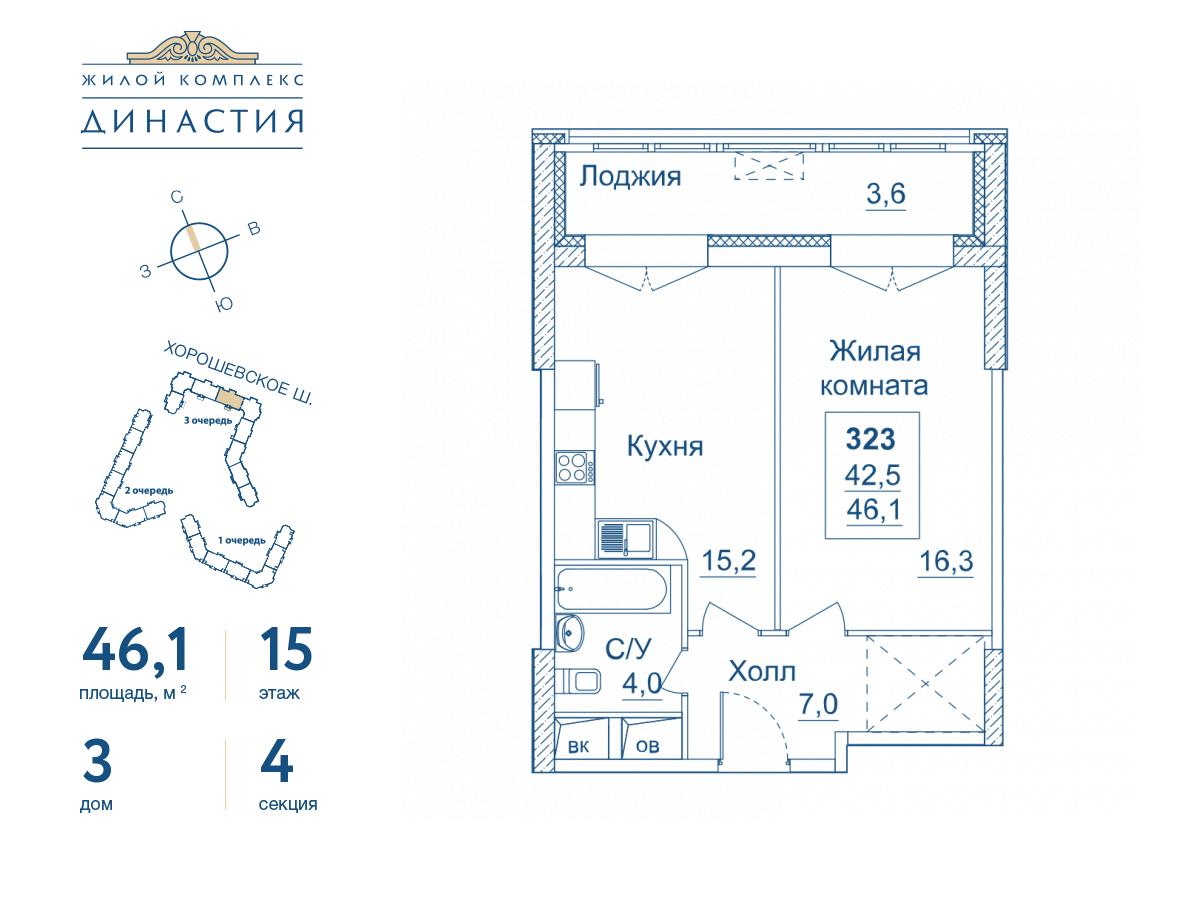 Третий дом — завершающий этап строительства жилого комплекса «Династия». Внешний фасад выходит на Хорошевское шоссе, его декоративный ажурный орнамент является визитной карточкой проекта. Оригинальная геометрия дома обеспечивает выбор планировочных решений из более чем 80 базовых вариантов. Из девяти секций дома — две угловые, две торцевые и поворотная с широким углом обзора. Благодаря этому в ряде однокомнатных квартир предусмотрено четыре окна и лоджия, треть квартир имеют две и более лоджий, двух- и трехкомнатные — функциональные ниши для организации систем хранения. Площади однокомнатных квартир от 40 до 55 кв. м, двухкомнатных — от 59 до 80 кв. м, трехкомнатных — от 86 до 102 кв. м. В числе особых предложений — 16 квартир с открытыми террасами, квартиры с окном-розой диаметром 5,4 м.