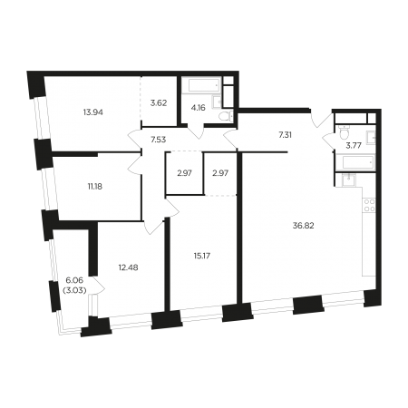 Четыре дома переменной этажности (29 - 30) запроектированы на 1384 квартиры. Проектом предусмотрены разнообразные планировочные решения от компактных студий площадью 24 кв. м до пятикомнатных в 130 кв. м. В 6-м корпусе запланировано возведение встроено-пристроенного детского сада на 170 мест.
