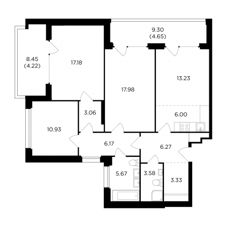 - Корпус № 3 - на 100% выполнен комплекс работ по устройству фундаментной плиты и работы по устройству монолитных конструкций -2 и -1 уровней;