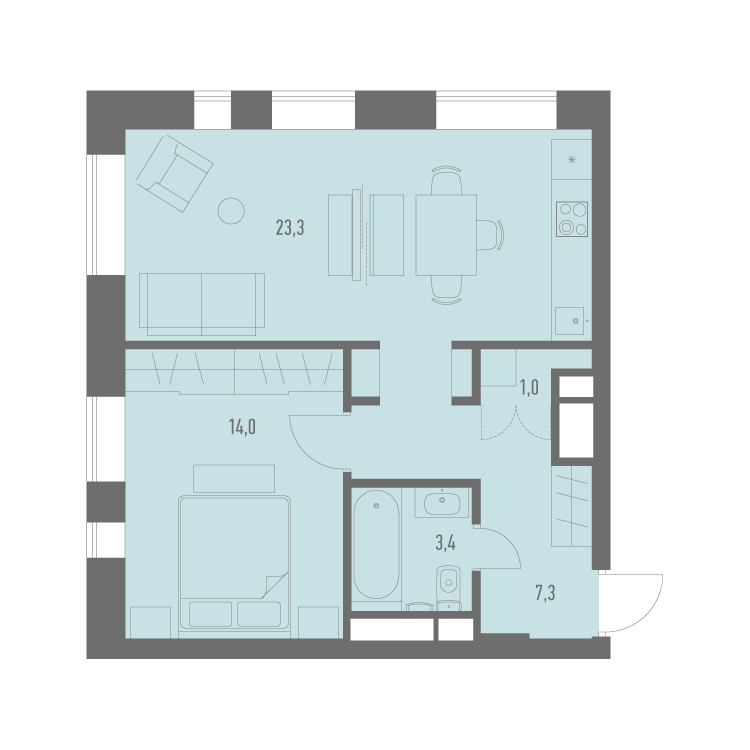 На сегодняшний день открыты продажи в 20 и 23 корпусах. Напомним, все квартиры в 20 корпусе сдаются с отделкой white box. В квартирах будет выполнен комплекс черновых работ перед финишным этапом: возведение межкомнатных перегородок, штукатурка и шпаклевание поверхности стен, устройство стяжки пола, монтаж натяжных потолков, разводка электрики и сантехнические работы. Минимальная стоимость квартиры-студии площадью 29,3 кв.м составляет 5,8 млн руб.