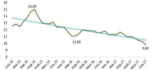 Средневзвешенная ставка (%) по ипотеке на первичном рынке Московской области