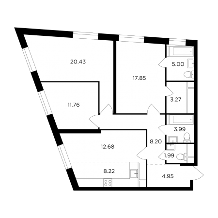Новый корпус состоит из трех 30-этажных секций, в которых запроектировано 513 квартир, реализуемых как с ремонтом от застройщика, так и без него. В жилой фонд дома включены самые различные планировочные решения, как в классическом, так и в европейском формате – от небольших и компактных студийных вариантов, до интересных четырехкомнатных квартир. Площадь их варьируется от 23,6 кв. метра до 130. Высота потолков в некоторых предложениях достигает 3,2 метра. Также можно приобрести лот с террасой или панорамным остеклением – они располагаются на последних этажах корпуса.