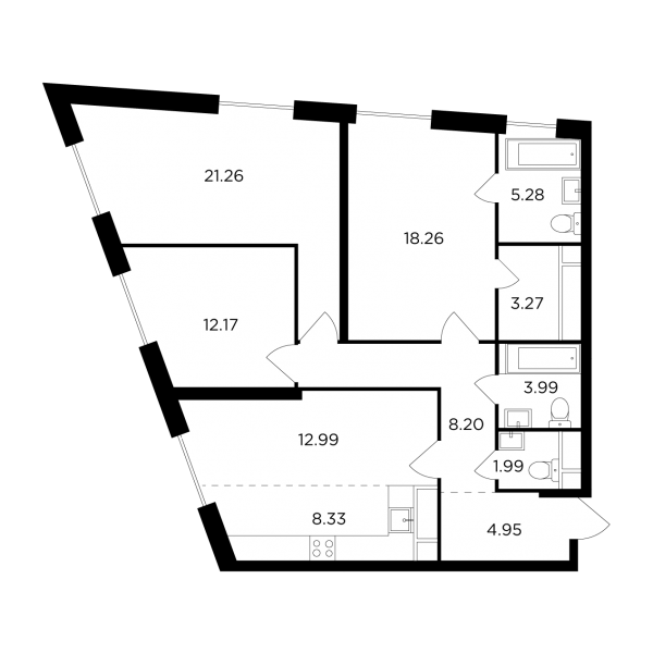 Первые продажи начались в 28-этажных монолитных домах, рассчитанных в общей сложности на 746 жилых помещений площадью от 29,98 до 170,54 кв. метра, с количеством комнат от одной до четырех и высотой потолков, достигающей 3,3 м.