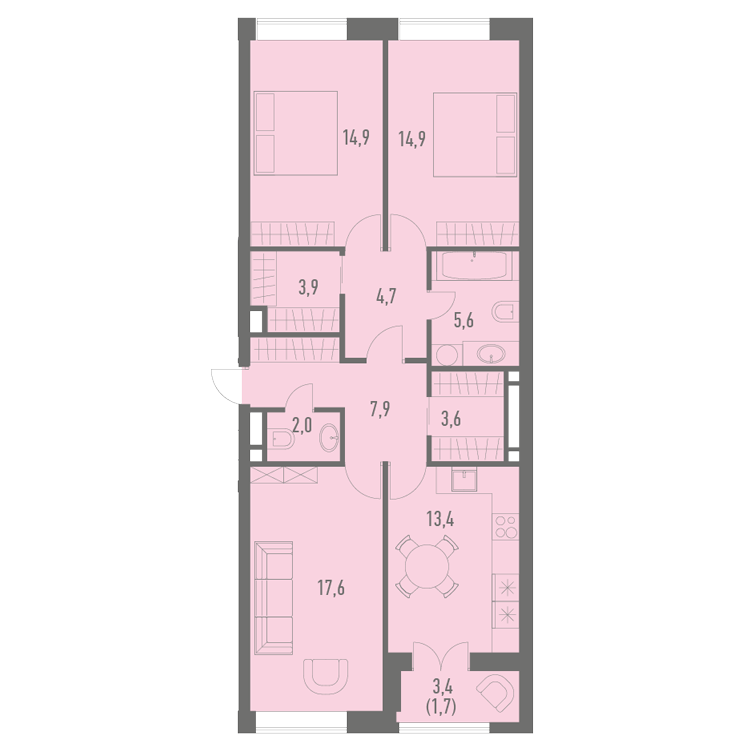 В реализацию поступили жилые площади без отделки в корпусах под номерами 16, 17, 18 и 19. Позже в продажу выйдут квартиры с ремонтом, расположенные в корпусе номер 15.