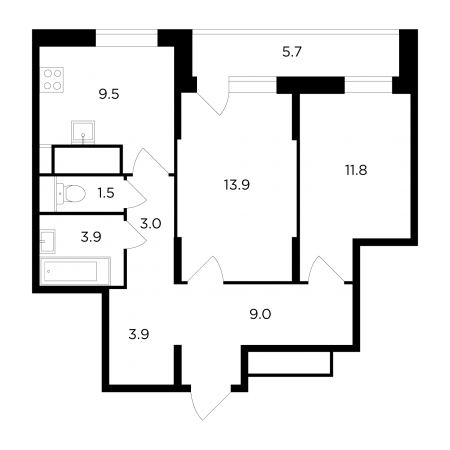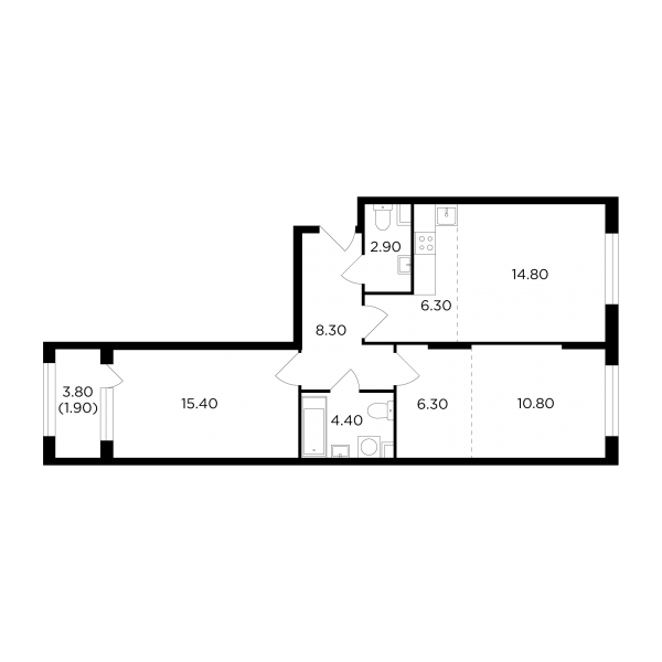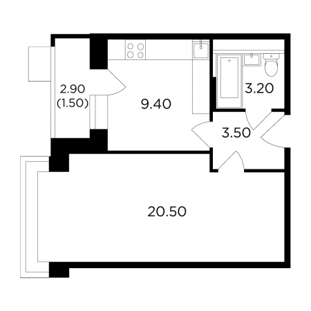 Мебель в квартирах расположена с применением принципа максимальной эргономичности и зонирования пространства. В однокомнатных квартирах есть все, что необходимо для комфортной жизни небольшой семьи: прихожая, кухня с небольшой столовой зоной, в жилой комнате может быть расположена рабочая зона, гардероб, двуспальная кровать или диван, а также уютный уголок для чтения. Просторные лоджии позволяют даже в однокомнатной квартире создать уютный уголок для отдыха и добавить ей простора.