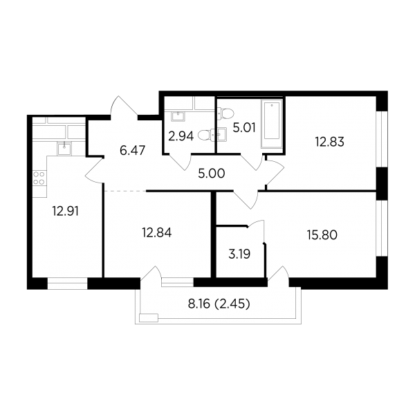 Таблица 3. Свободное жилье без отделки в корпусе 3
