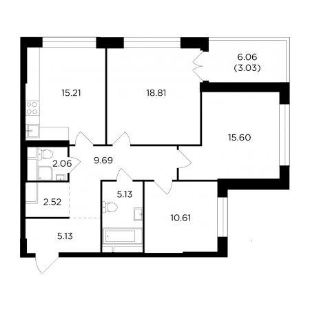 Угловое остекление, гардеробные, просторные ванные комнаты с окном, возможность установки камина в квартирах (на последних двух этажах), две/три лоджии с панорамным остеклением – здесь каждый сможет подобрать планировочное решение по душе.