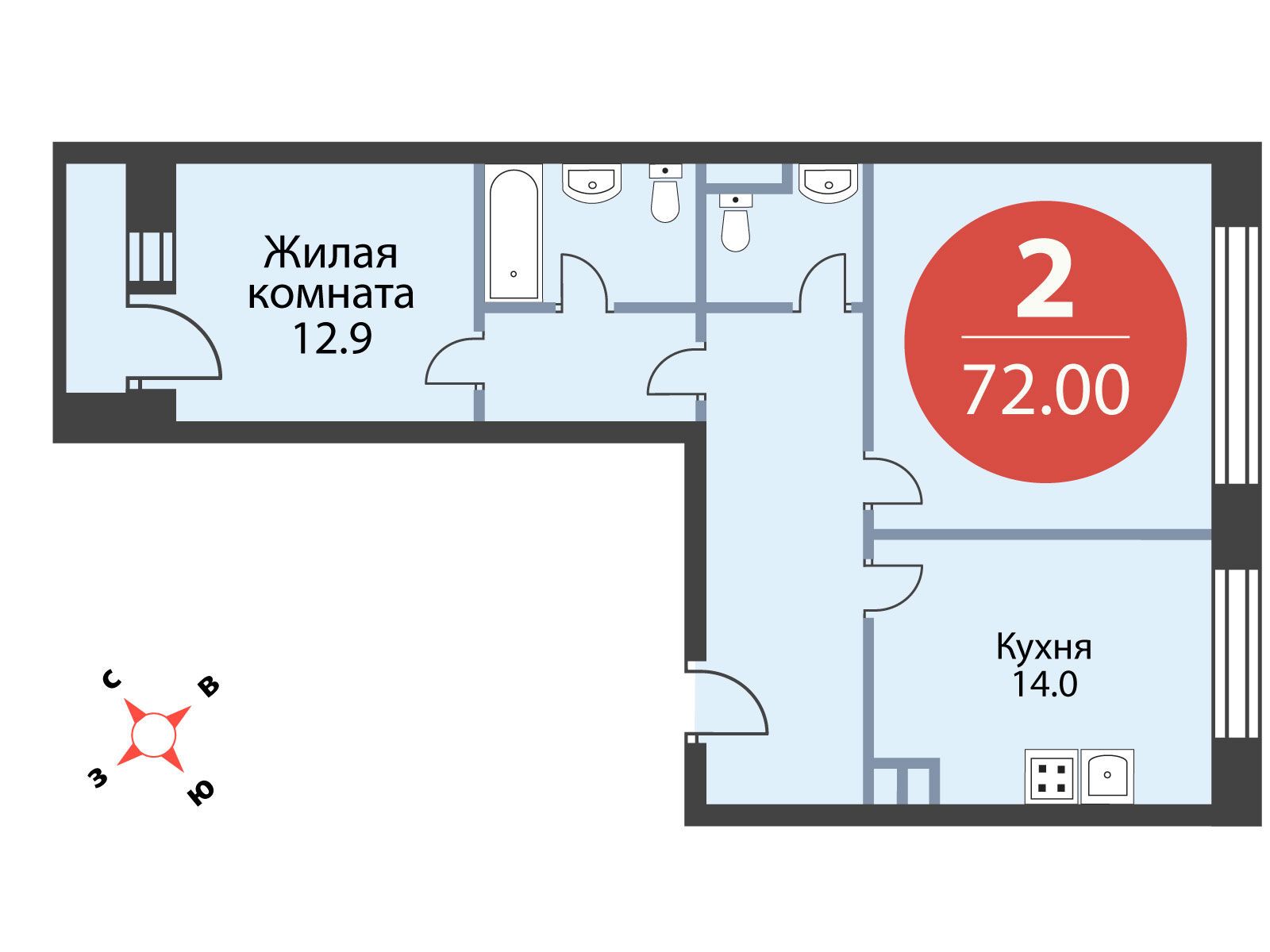 Двухкомнатная евро (осталось 2) |