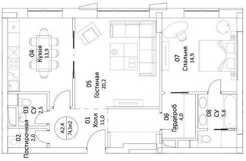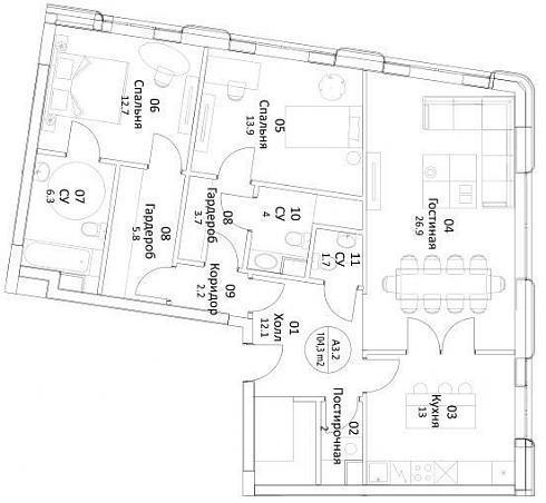 Пройдемся от большего к меньшему. В корпусе под номером 2 с четвертого по десятый этажи продаются апартаменты с отделкой, да не простой, а золотой, с полностью обставленной итальянской мебелью и бытовой техникой кухней и укомплектованным санузлом (санузлами). На официальном сайте «ВТБ Арена-Парк» можно полюбоваться всем этим великолепием, дополненным видами меблированных комнат.