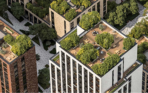Так вот, кровля будет эксплуатируемой, на террасы смогут выходить жильцы прилегающих квартир, а что до деревьев, то это, скорее фантазии дизайнеров, нежели реалии. На 1 213 квартир приходятся 1 467 м/м в подземном паркинге. Цены на 13-метровое парковочное место стартуют от 2 000 000 рублей.