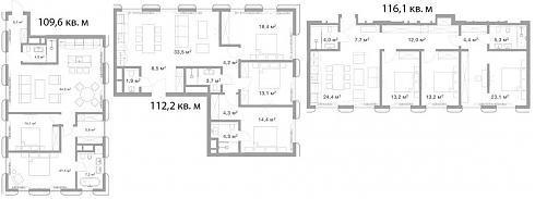 | Июнь 2018 | 109,6-116,1 м2 | 49 429 600 - 116 672 080 ₽ | ~738 230 ₽ | |