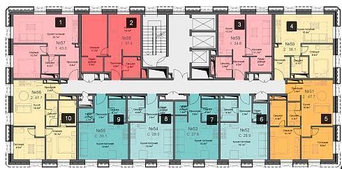 к.2 – 58 этажей, 431 квартира, 126 кладовых.
