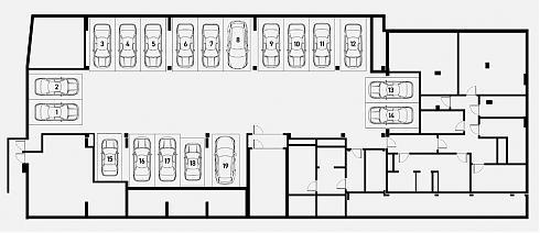 Со второго по девятые этажи в высокой секции комплекса на лестничной клетке расположено по 3 апартамента. Их конфигурация на 2-7 этаже не совпадает с таковой на 8-9 этажах.