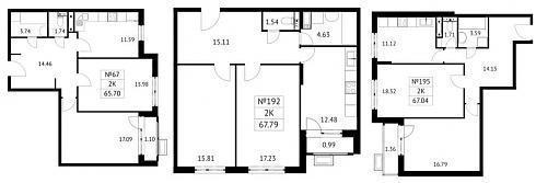 | Октябрь 2019 | 60,4-71,07 м2 | 9 668 364 - 13 058 745 ₽ | ~173 489 ₽ | |