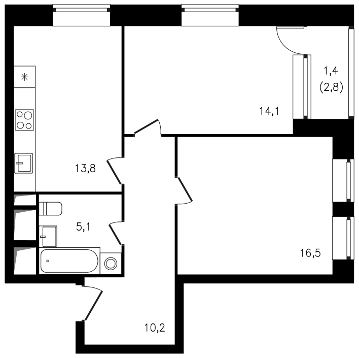 Напрочь лишенные балконов студии выделяются лишь габаритами санузлов: