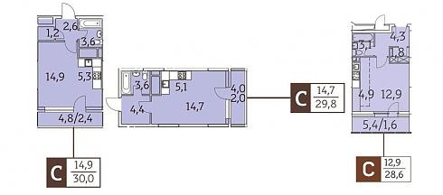 | Январь 2020 | 28-29,9 м2 | 5 947 396 - 6 222 967 ₽ | ~213 515 ₽ | |