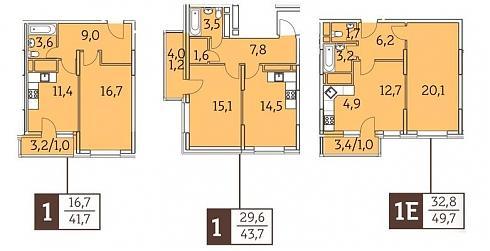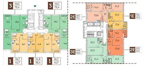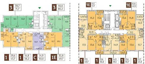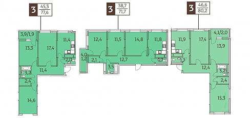В корпусе №1 сосредоточились небольшие и средние по площади трехкомнатные квартиры: