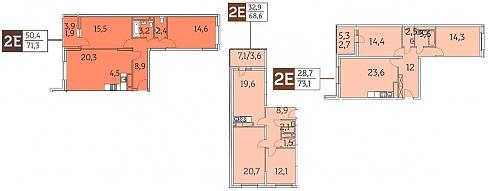 | Январь 2020 | 49,4-71,3 м2 | 8 795 225 - 13 424 225 ₽ | ~185 162 ₽ | |