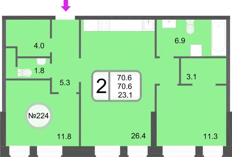 | Февраль 2020 | 26,4-26,4 м2 | 6 415 200 - 7 101 600 ₽ | ~259 938 ₽ | |