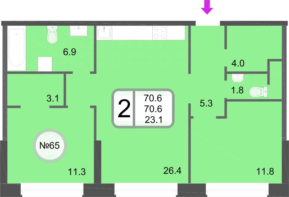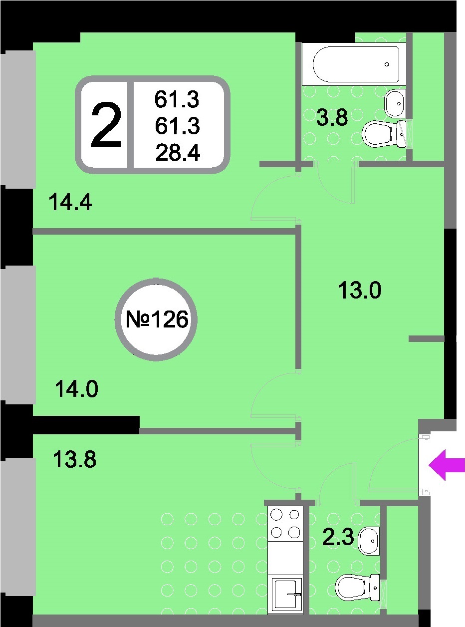 Площади двухкомнатных квартир в этом корпусе ограничены 61 кв. м.
