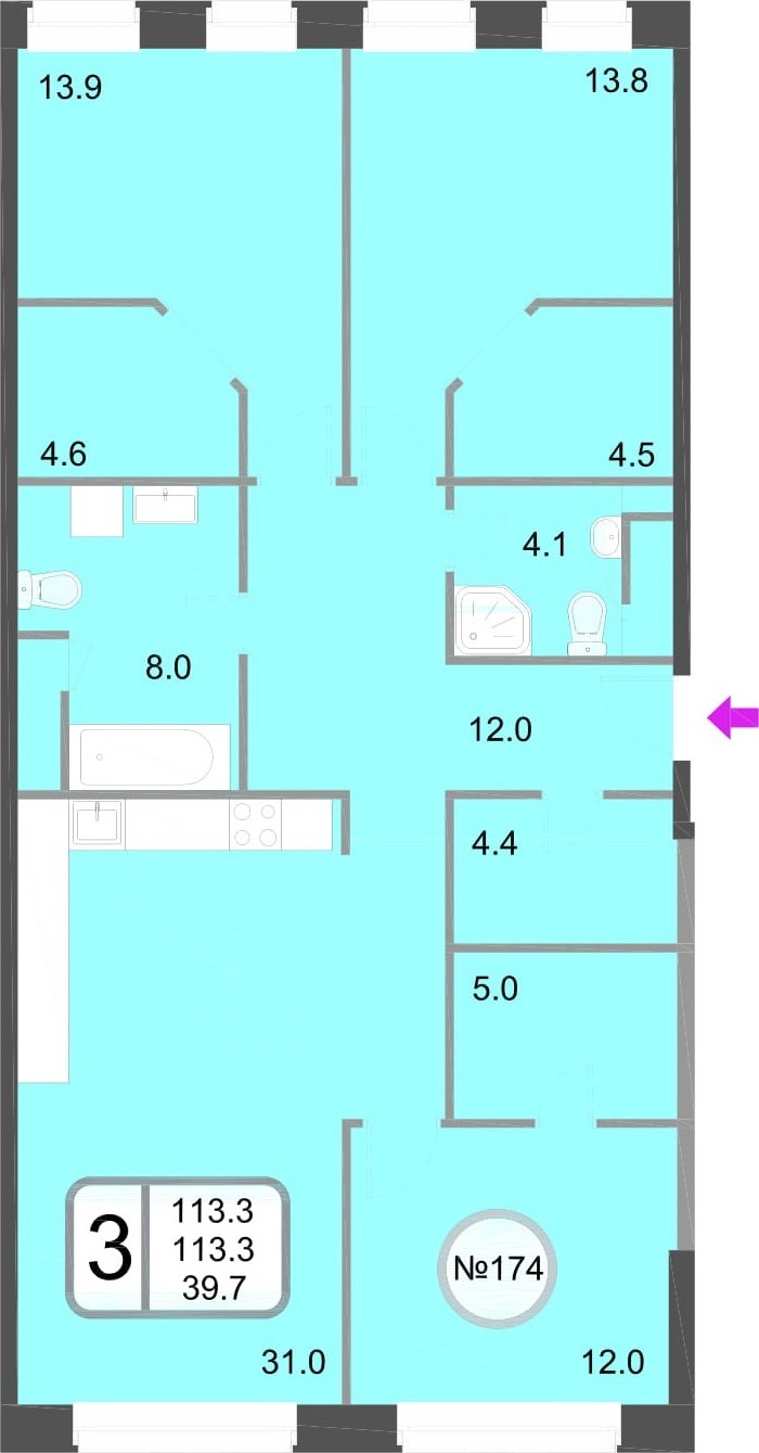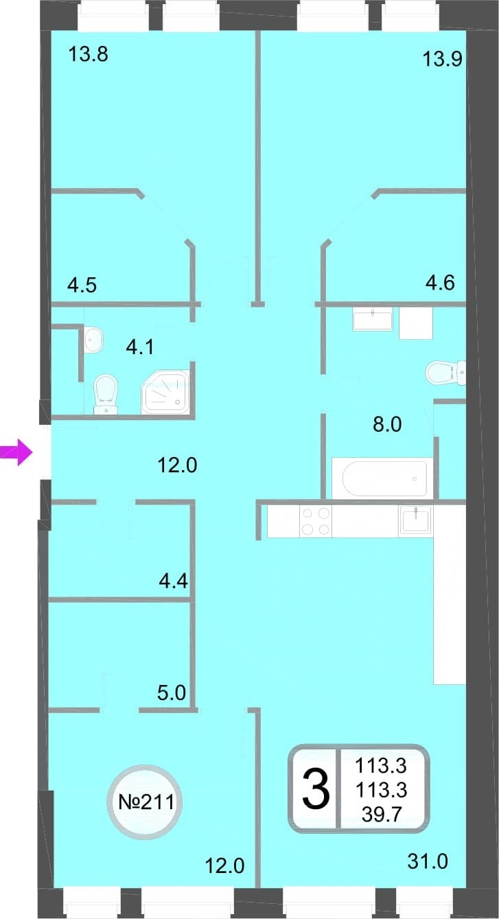| Ноябрь 2016 | 64,4-119,5 м2 | 11 753 000 - 23 850 527 ₽ | ~194 555 ₽ | 4.04% |