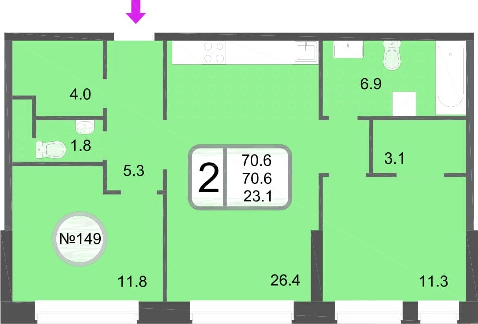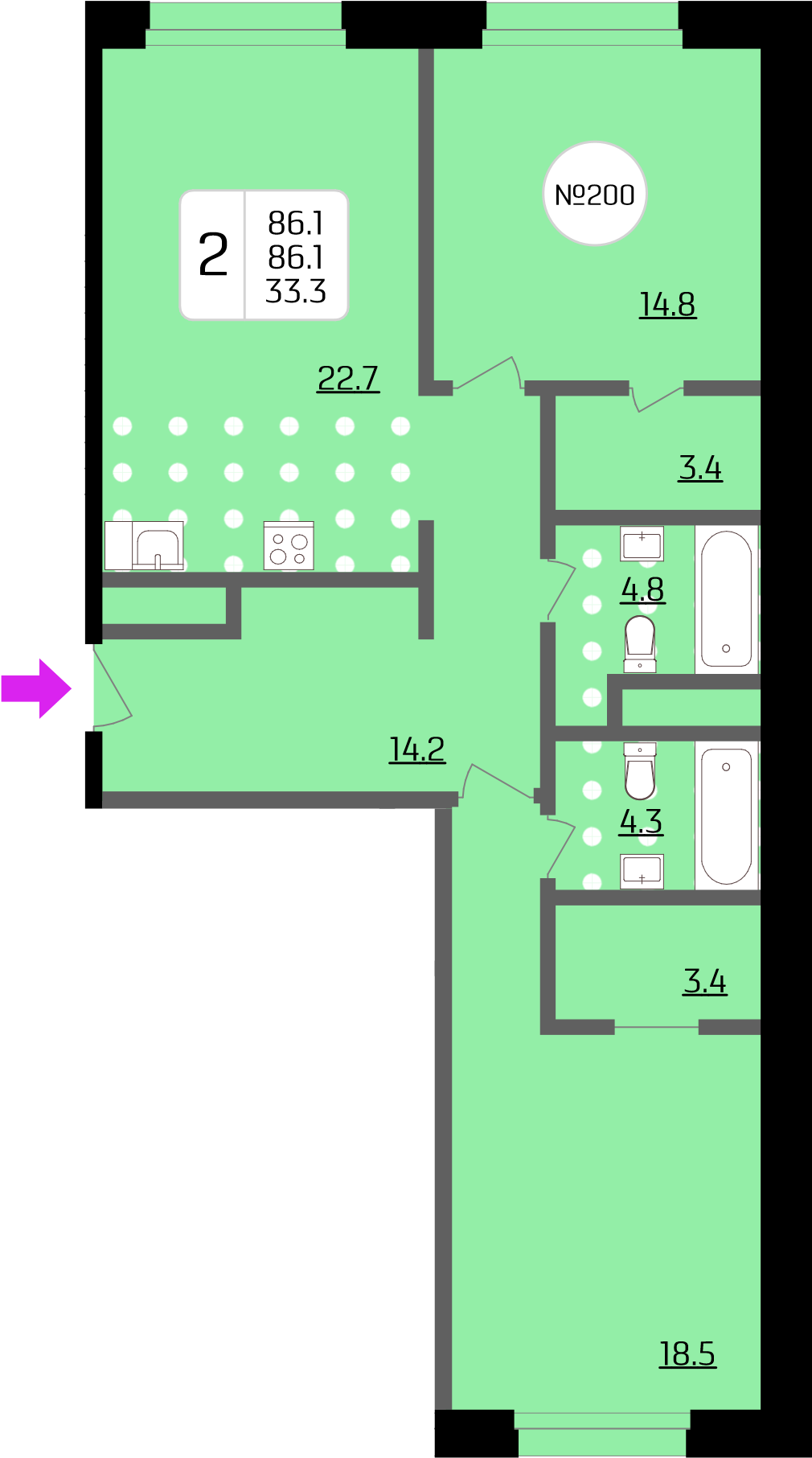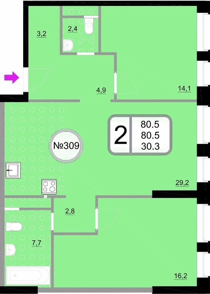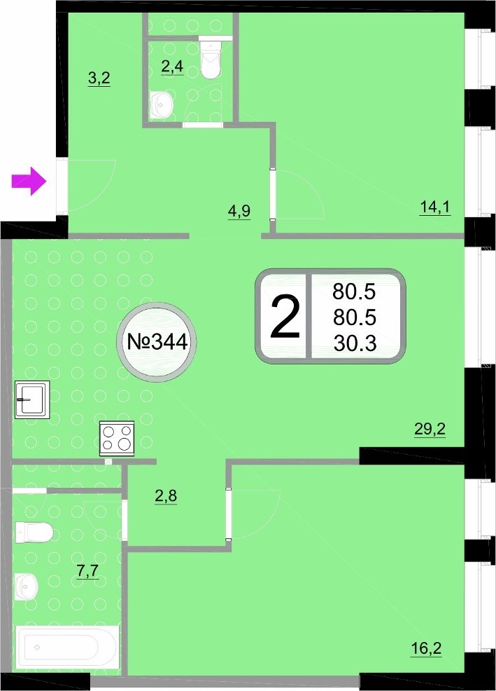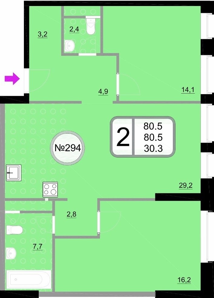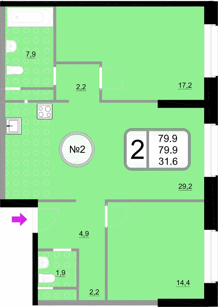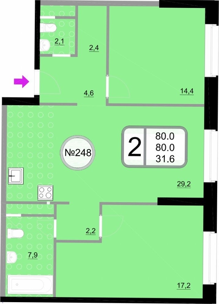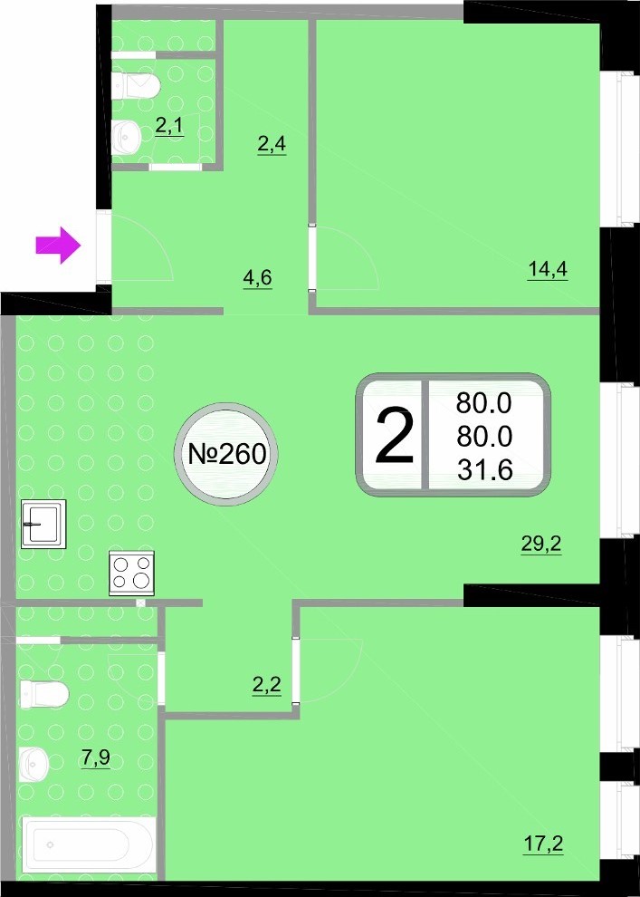 Площади двухкомнатных квартир в этом корпусе ограничены 61 кв. м.