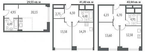 | Февраль 2020 | 40,6-47,05 м2 | 9 727 040 - 12 064 860 ₽ | ~250 482 ₽ | 6.14% |
