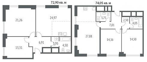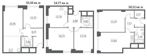 Варианты двушек с большей площадью смотрятся на этом фоне чуть более органично: