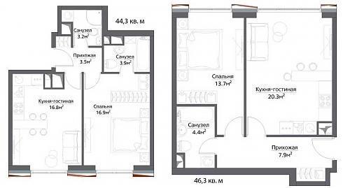 | Сентябрь 2021 | 24,5-44,2 м2 | 8 866 000 - 14 372 381 ₽ | ~341 741 ₽ | 1.34% |