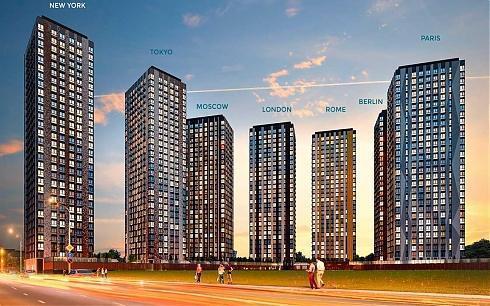 На территории завода «Москвич» полно места, пригодного для строительства жилья и не только его, поэтому первые семь корпусов ЖК можно загодя представить первой очередью строительства нового городского кластера. Архитектура 30-этажных монолитов с вентилируемыми фасадами, облицованными клинкерной плиткой разрабатывалась в недрах бюро SPEECH, известного своим неприятием балконов и лоджий, которые, естественно, не могли появиться здесь ни при каких обстоятельствах. Корпуса получили названия крупных мировых столиц, но судя по опубликованным рендерам, внешние отличия у них будут минимальными: