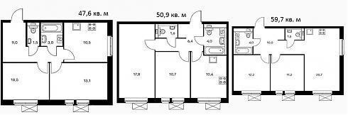 | Сентябрь 2019 | 47,6-59,9 м2 | 10 983 000 - 14 107 110 ₽ | ~236 699 ₽ | |