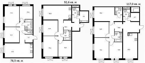 | Январь 2020 | 78,5-92,6 м2 | 17 160 100 - 19 890 480 ₽ | ~217 945 ₽ | |
