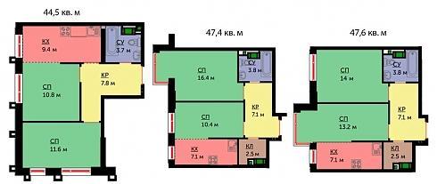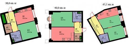 Студий в этом корпусе нет, площади однокомнатных квартир находятся у отметки в 40 кв. м, некоторые варианты с натяжкой можно считать «евро-двушками»: