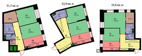 Очевидно, что евро-форматы находятся у застройщика в приоритете – прогресс, по его мнению, должен следовать именно в этом направлении. Двухкомнатные квартиры площадью до 56 кв. м представляют собой как раз такую вариацию на заданную тему: