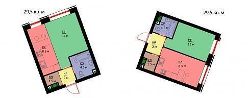 Из 29,5 квадратных метров может получиться как студия, так и скромная однушка: