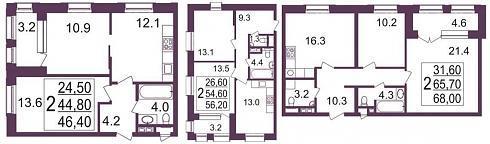 | Август 2017 | 46,4-68 м2 | 3 971 840 - 5 548 800 ₽ | ~83 514 ₽ | |