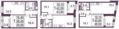 | Январь 2019 | 39,85-48,5 м2 | 3 537 486 - 4 500 902 ₽ | ~92 395 ₽ | |