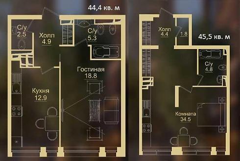 | Май 2020 | 44,4-45,5 м2 | 13 530 000 - 14 607 600 ₽ | ~316 153 ₽ | |