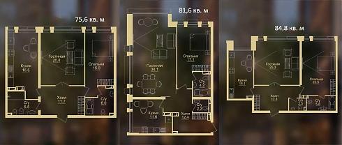 Трехкомнатные квартиры представлены в угловом, линейном и распашном вариантах. Небольшие претензии могут возникнуть к кажущейся излишне вытянутой форме кухонь, наибольшие восторги могут вызвать квартиры с террасами, находящиеся на 27 этаже в секции «В»: