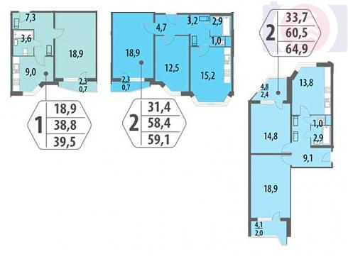 | Март 2019 | 57,9-64,9 м2 | 9 238 000 - 10 870 750 ₽ | ~166 188 ₽ | |