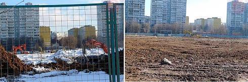 Начало строительства ЖК «Орехово Борисово», согласно данным из самой первой проектной декларации Комплекса, было запланировано на IV квартал 2016 года. Если считать началом строительства расчистку и выравнивание земли под будущую стройплощадку, а также ее ограждение, то можно считать, что Застройщик Комплекса, НАО «ИНФОСЕТЬ» (читай РГ-Девелопмент), к марту 2017 с этим справился на все 100%. Вот так это выглядело в январе 2016 и насколько продвинулось через пару месяцев:
