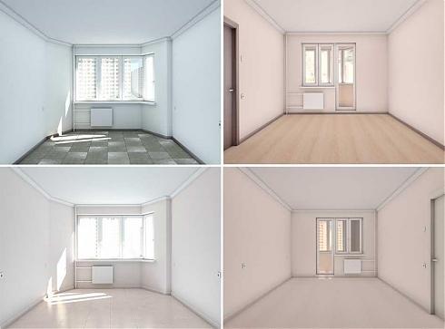 Однокомнатные квартиры имеют стандартные кухни и большую жилую комнату, двухкомнатные могут быть линейными или угловыми: