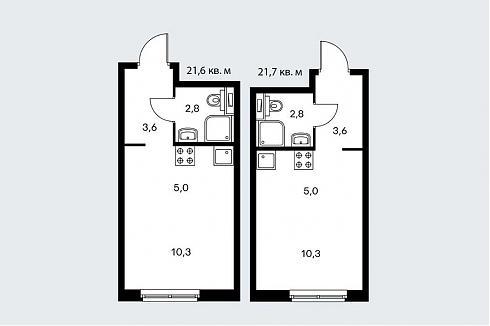 | Декабрь 2019 | 21,6-21,7 м2 | 6 901 200 - 7 128 450 ₽ | ~334 039 ₽ | |