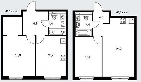 | Январь 2019 | 41,2-43,2 м2 | 8 614 080 - 10 192 880 ₽ | ~223 892 ₽ | |