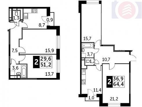 | Сентябрь 2019 | 51,2-90,4 м2 | 9 006 497 - 17 453 700 ₽ | ~187 661 ₽ | |