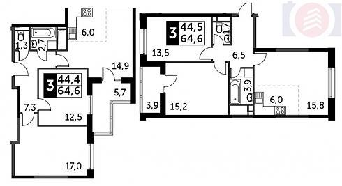 | Март 2019 | 57-64,4 м2 | 9 185 550 - 10 873 250 ₽ | ~165 775 ₽ | |