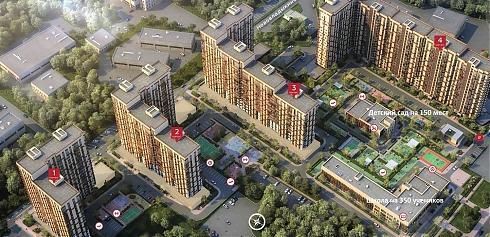 В строительстве 16-20-этажных многосекционных домов применяется монолитно-каркасная технология, вентилируемые фасады отделываются керамогранитными панелями контрастного цвета.