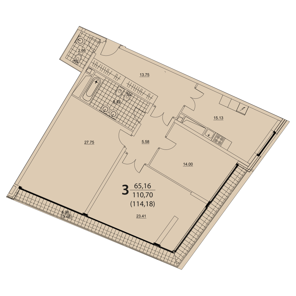 В трехкомнатных квартирах дома изредка попадаются параллельные друг другу стены, но в основном бал здесь правит занимательная геометрия: