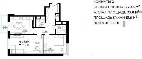 Двухкомнатные квартиры площадью под 70 квадратов выглядят наиболее симпатично: